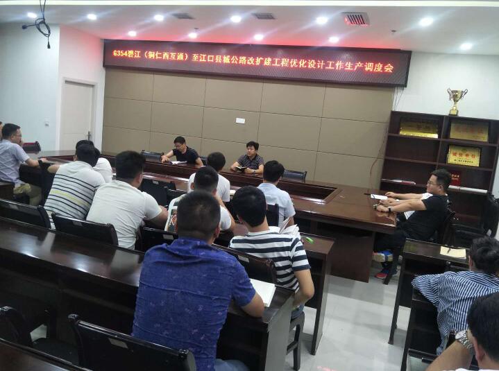 2020年6月8日晚,铜仁交旅集团公路勘察设计公司领导班子召集全体技术人员,召开工作调度会,对G354碧江(铜仁西互通)至江口县城改扩建工程优化设计工作相关事宜进行安排和部署。