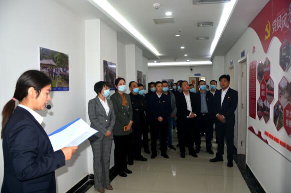设计公司党支部副书记李妮贵带领观摩团,从公司一楼至二楼,参观了党史学习教育、党建引领、党建品牌创建、廉洁文化墙、设计成果、党员风采、党建带工建、为群众办实事等展牌及党员活动室阵地建设,并作了现场解说。通过听解说、看展板,观摩团了解了设计公司党建与业务融合发展的情况。