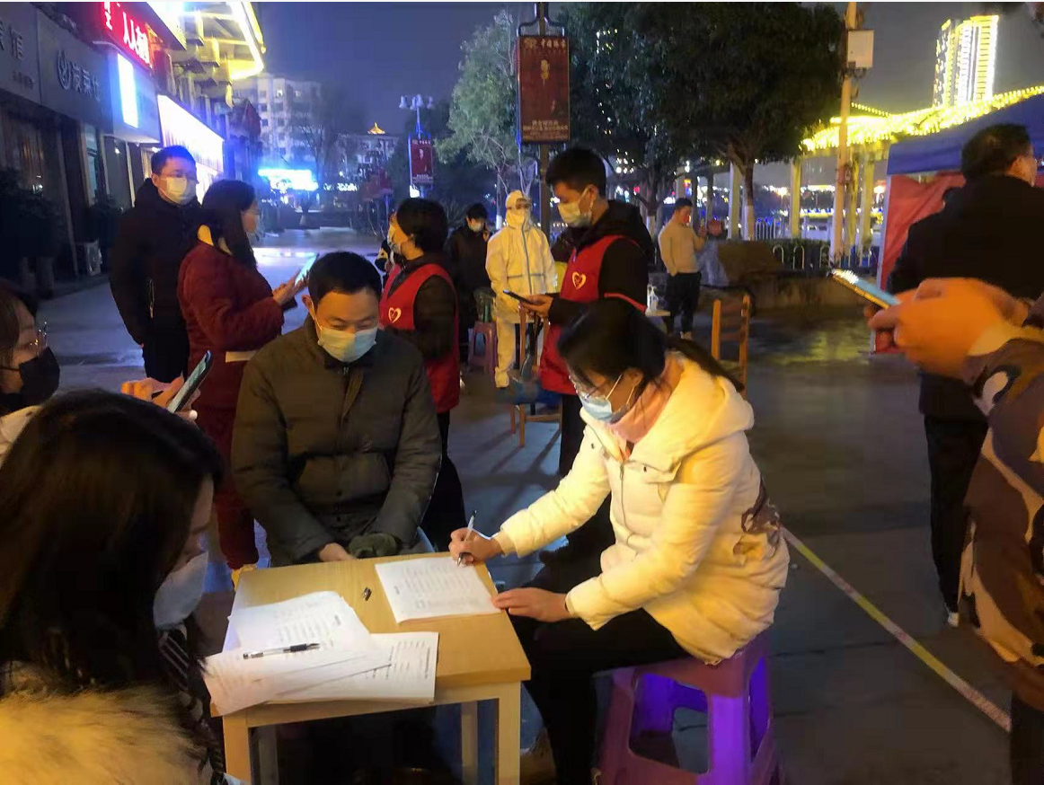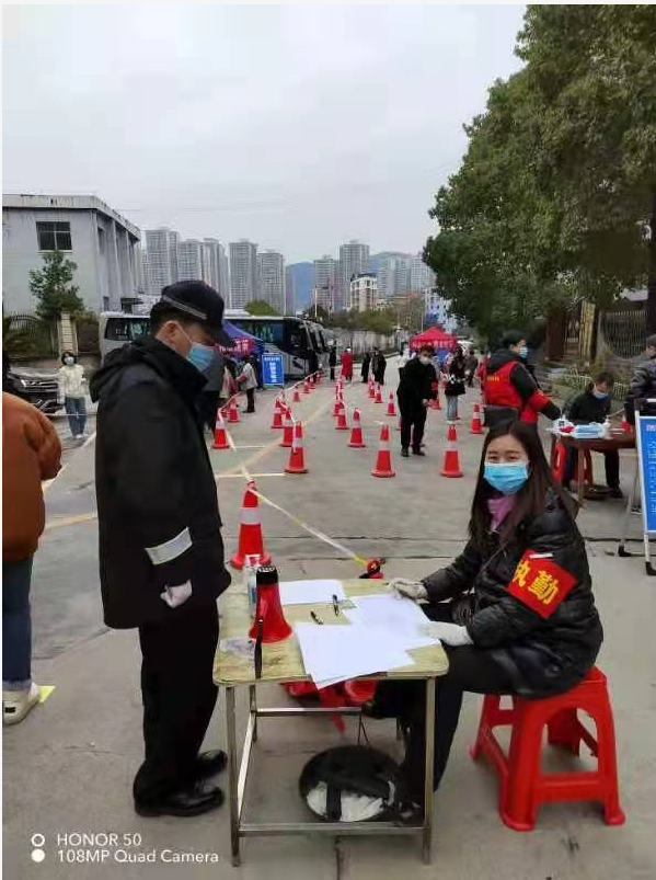 “我是设计院党员,我来社区报到参与社区疫情防控工作”, “请提前打开核酸检测小程序,保持一米间距,耐心等待” 积极引导居民有序排队。这是设计院奋战在抗疫一线的党员在社区核酸检测现场维持秩序和信息登记录入工作的缩影。