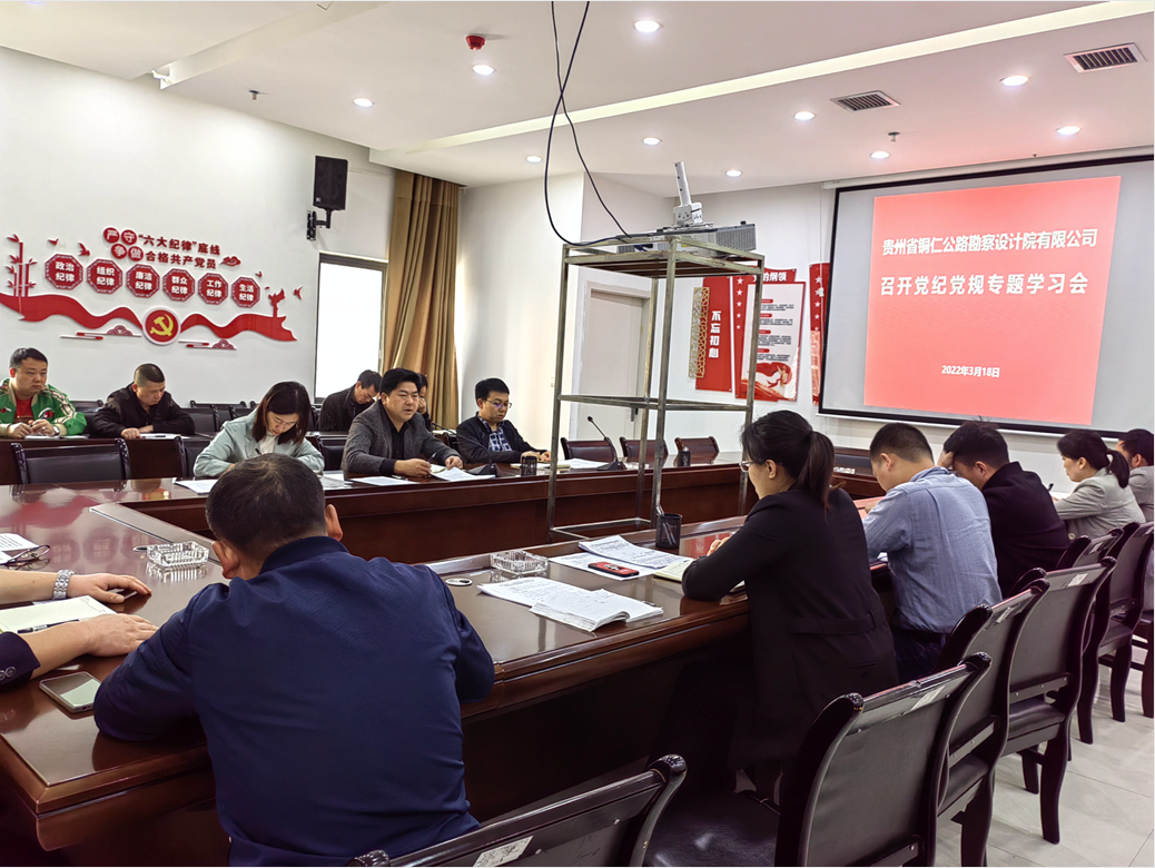 2022年3月18日,铜仁市城交集团公路勘察设计公司组织召开党纪党规专题学习暨酒驾警示教育会议。公司领导班子、中层以上干部、全体在职党员、入党积极分子,全体驾驶员参加会议,党支部书记、总经理刘兴连主持会议。