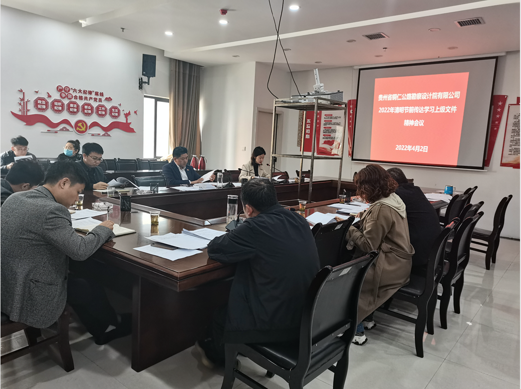 会上,深入学习了新国发2号文件和《中共铜仁市委办公室铜仁市人民政府办公室关于开展深化党员干部和公职人员酒驾醉驾问题集中整治行动的通知》文件精神;传达学习了集团公司2022年第二次安全环保工作调度会议精神、集团纪委《关于严明2022年“清明”“五一”节日期间纪律要求的通知》及设计公司《关于做好近期疫情防控工作的通知》等文件精神。