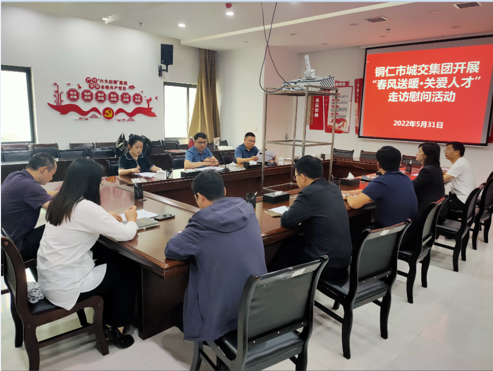 2022年5月31日,铜仁市城交集团党委委员、副总经理赵天勇携集团安全环保部一行到公司开展“春风送暖·关爱人才”走访慰问活动。
