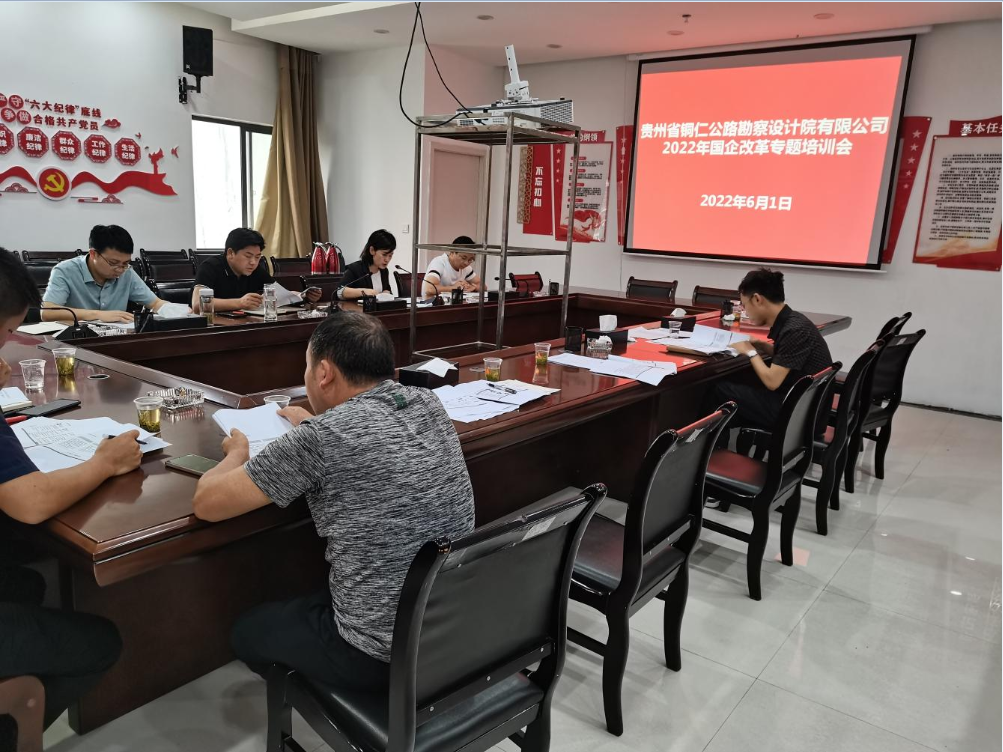 2022年6月1日,williamhill中文官网组织召开2022年国企改革专题培训会。公司领导班子成员,各部门、分院负责人参加培训。