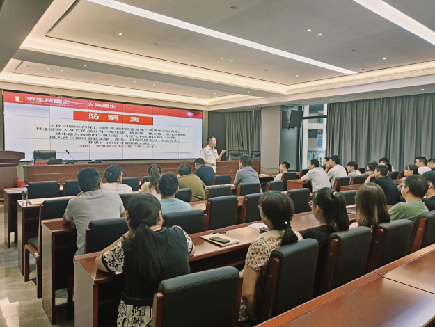 为提高火灾应对能力,增强防火意识,确保训练全过程安全,遏制各类事故发生,8月15日下午,williamhill中文官网(以下简称“设计公司”)组织开展夏季消防安全知识培训和应急演练活动。设计公司副总经理杨富林主持讲座。全体在家干部职工参加活动。